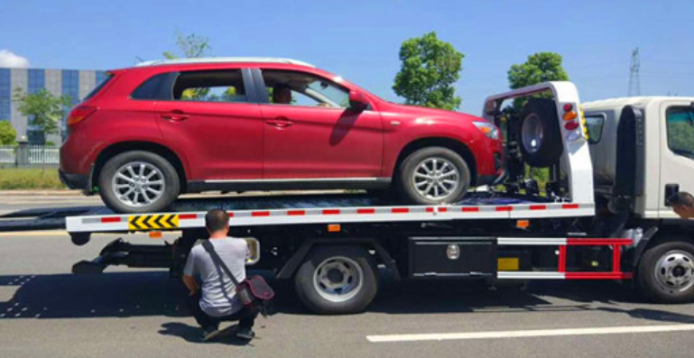 整个过程行云流水,不过十分钟左右,故障车就已经被牢牢地固定在了拖车上。孩子也被外面的动静弄醒了,但他没有哭闹,而是好奇地趴在车窗上,看着这个“大黄车”把自家的车“背”了起来,眼神里充满了新奇。